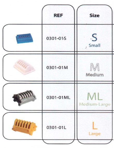 Presentación: Medidas Small y médium se presentan en cajas de 50 blisters, 6 clips por blister.